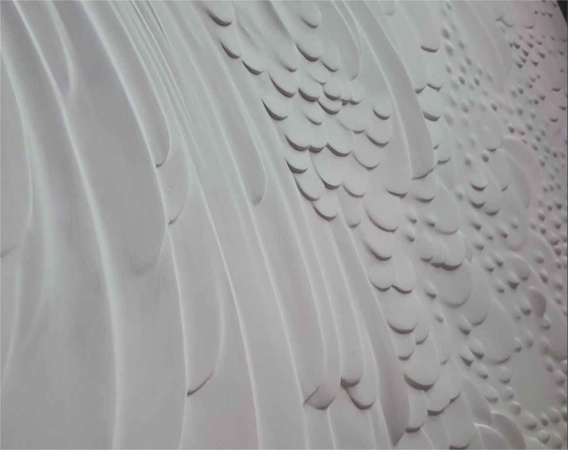 Plaster abstract panel on Mosfilmovskaya, a private project in a modern interior. The customer came on the recommendation of his friends, but had little idea of what he wanted.